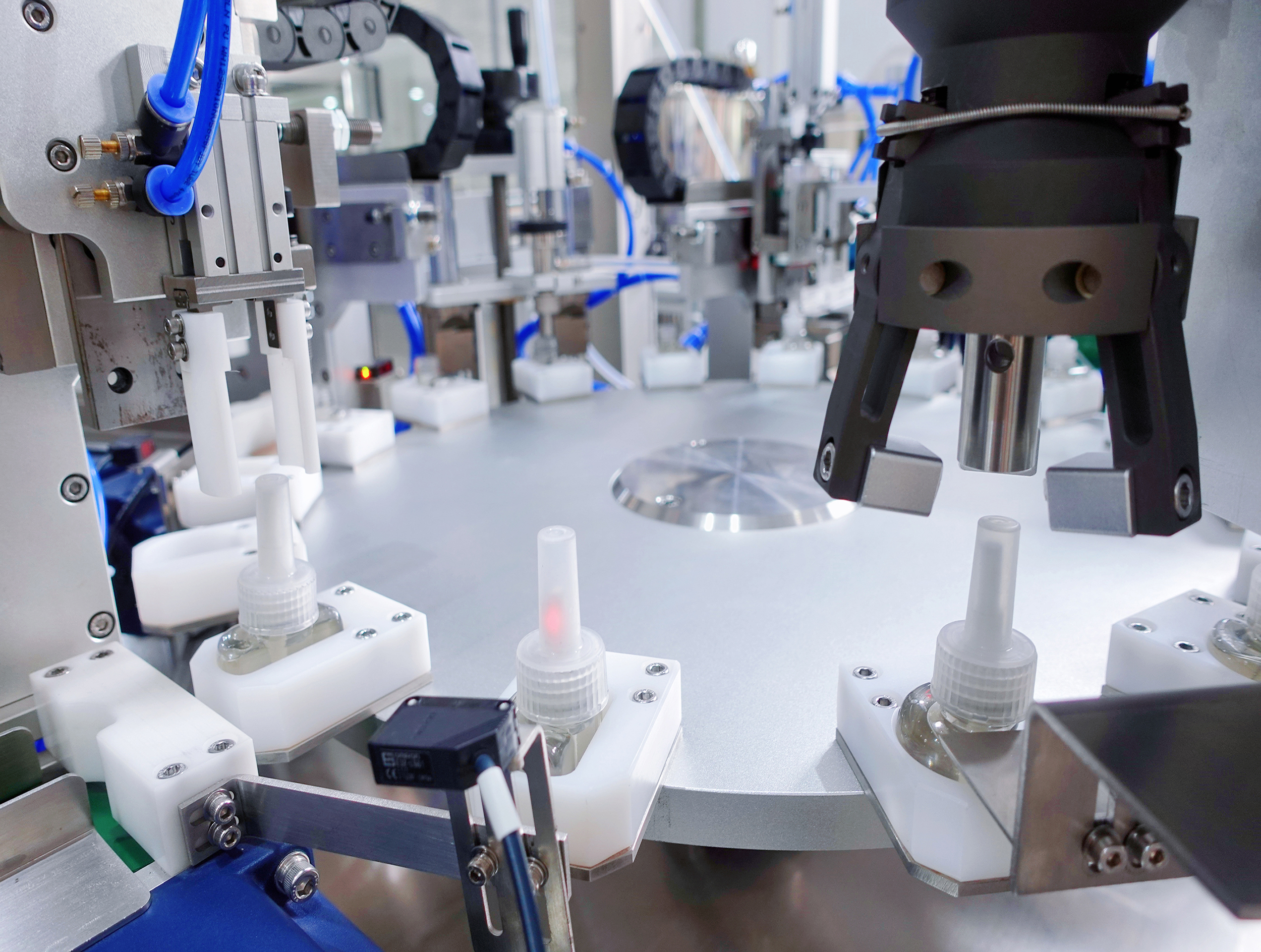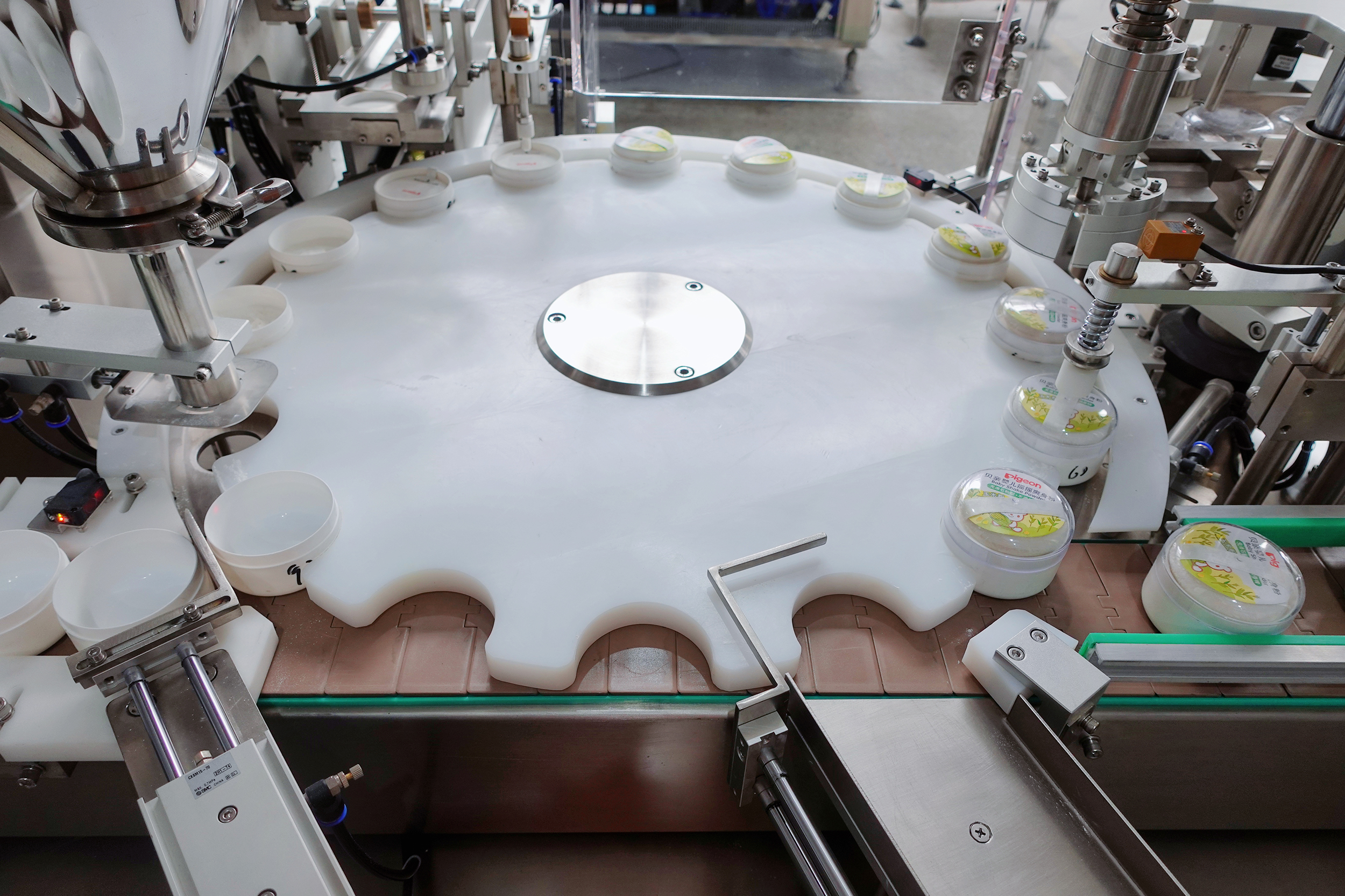 ○ 適用于醫(yī)藥、食品、化妝品、日用化工等行業(yè),針對(duì)各種瓶型進(jìn)行灌裝上塞、旋蓋??蓪⒁后w和膏體物料順利準(zhǔn)確地注入瓶中,并自動(dòng)完成上塞、旋蓋工作。