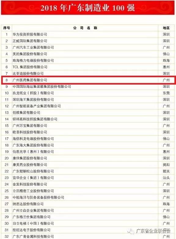 附:廣藥集團在2018廣東企業(yè)500強、廣東制造業(yè)500強中的排名