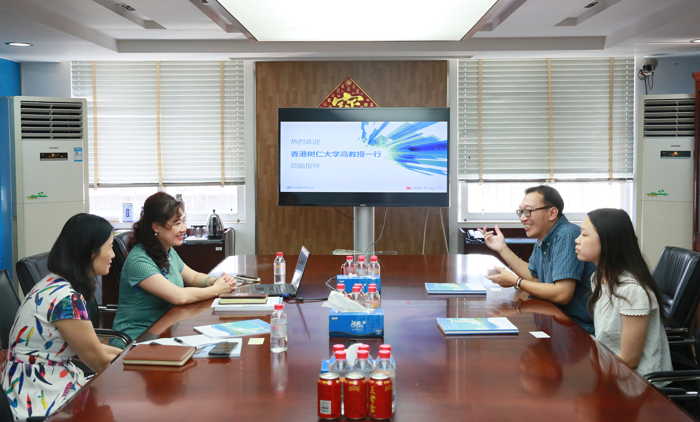 廣州醫(yī)藥黨委委員、工會(huì)主席何毅(左二),健民醫(yī)藥黨支部書記徐愛華(左一)與香港樹仁大學(xué)高崇博士(右二)座談交流