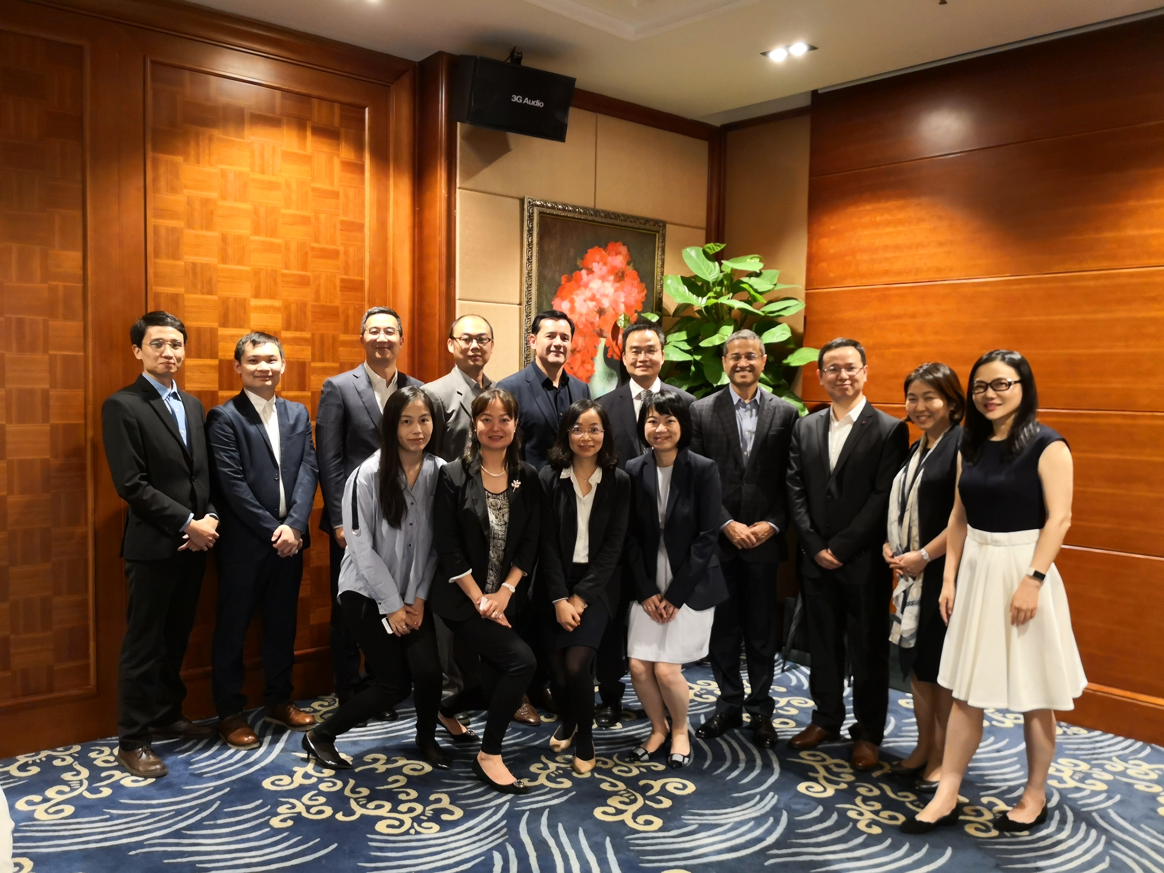 廣州醫(yī)藥黨委書記、董事長鄭堅雄(左)與強生視力健全球總裁Swami會面參會人員合影