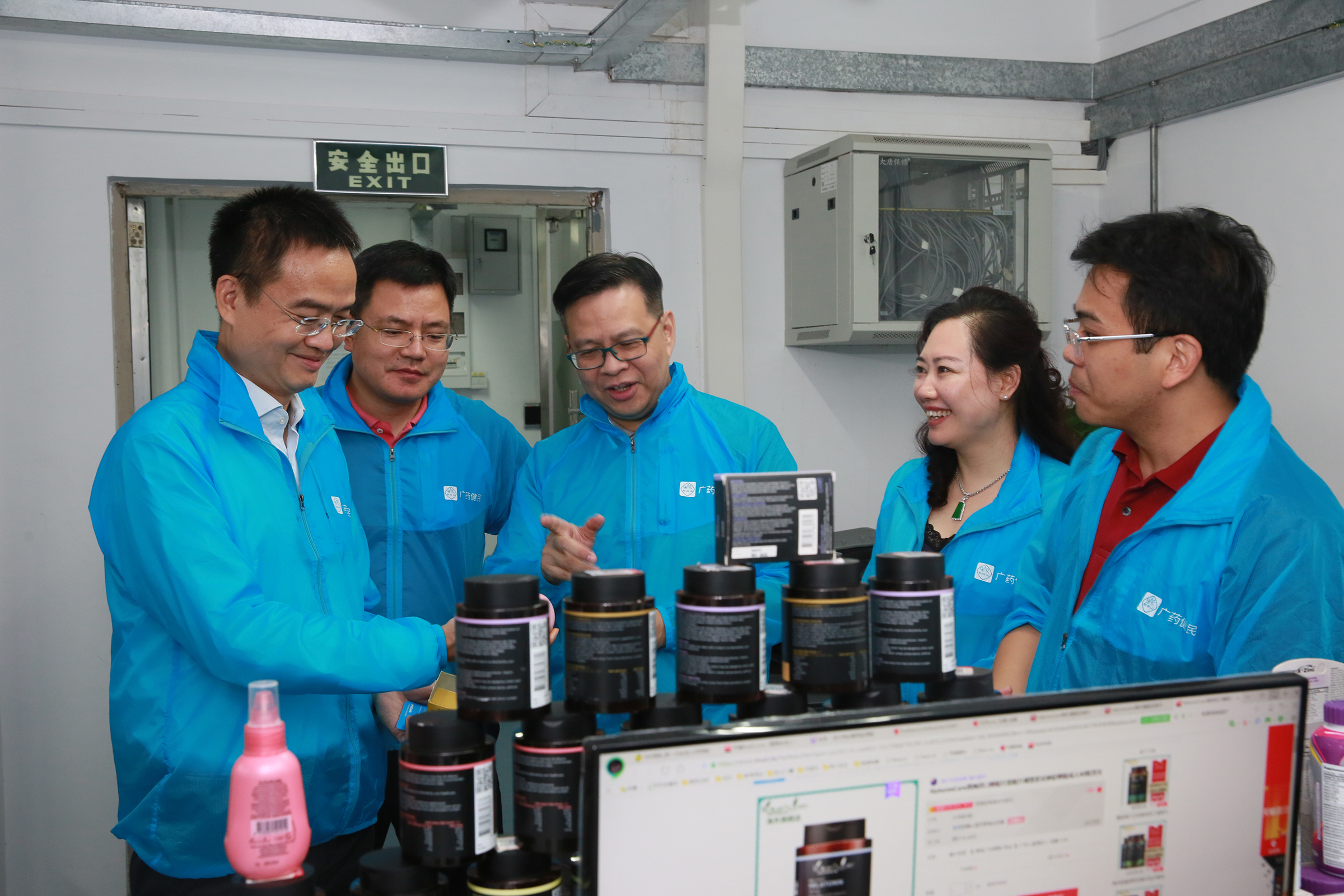 廣藥白云山總經(jīng)理黎洪(中)到健民國際天貓店了解備戰(zhàn)情況