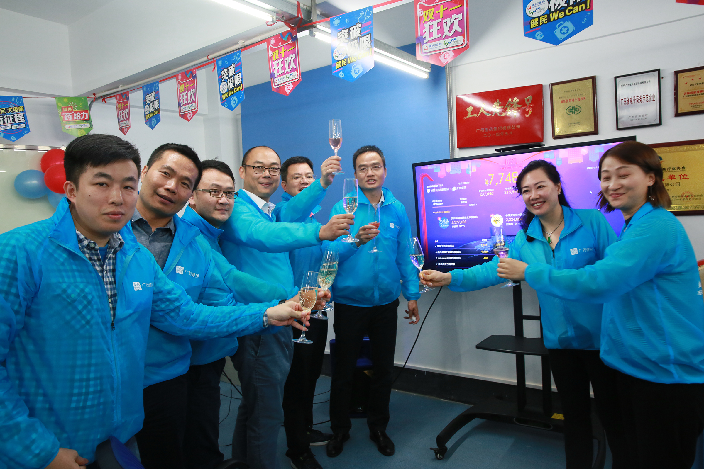 廣藥集團(tuán)、廣州醫(yī)藥各級(jí)領(lǐng)導(dǎo)以及各大供應(yīng)商非常重視此次“雙十一”戰(zhàn)役,廣藥白云山總經(jīng)理黎洪,廣州醫(yī)藥黨委書記、董事長鄭堅(jiān)雄,黨委委員、董事李曉東,黨委委員、工會(huì)主席何毅,健民醫(yī)藥黨支部書記、執(zhí)行董事徐愛華,健民醫(yī)藥總經(jīng)理蔣寧,健民醫(yī)藥黨支部副書記、工會(huì)主席黃靖等來到健民醫(yī)藥電子商務(wù)部,為前線員工鼓勁打氣,強(qiáng)生等供應(yīng)商伙伴也到場助陣,一起敲鑼打鼓。