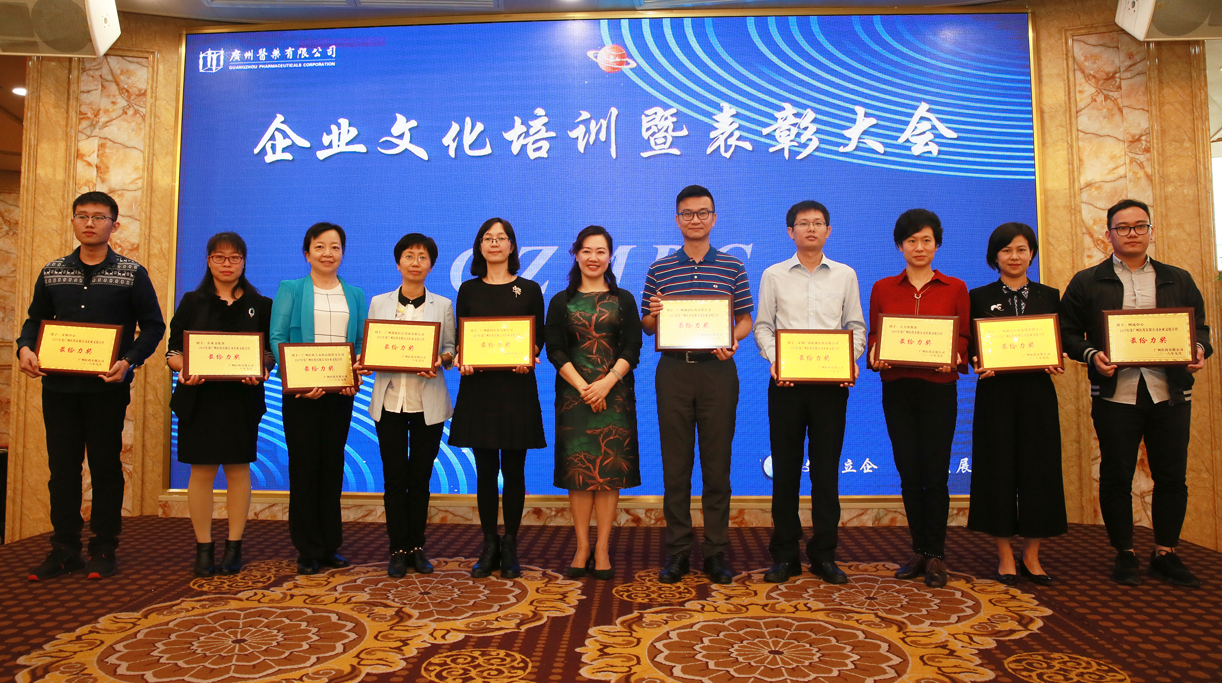 會議期間,對新的企業(yè)文化大使進(jìn)行授牌,對優(yōu)秀企業(yè)文化大使、優(yōu)秀通訊員、優(yōu)秀攝影記者、廣州市內(nèi)部出版物好新聞獎、行業(yè)工會優(yōu)秀優(yōu)良小組及組長、本部工會優(yōu)秀優(yōu)良小組及組長和6S優(yōu)秀優(yōu)良片區(qū)進(jìn)行表彰;同時舉行了“不忘初心,我與廣藥共成長”的演講比賽。
