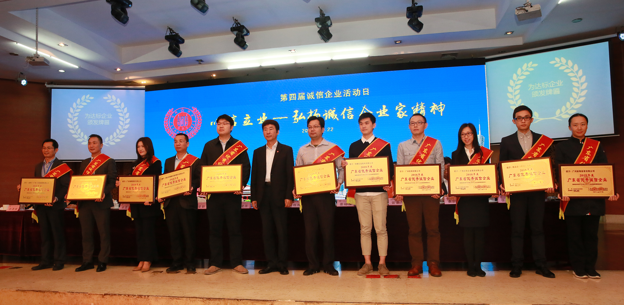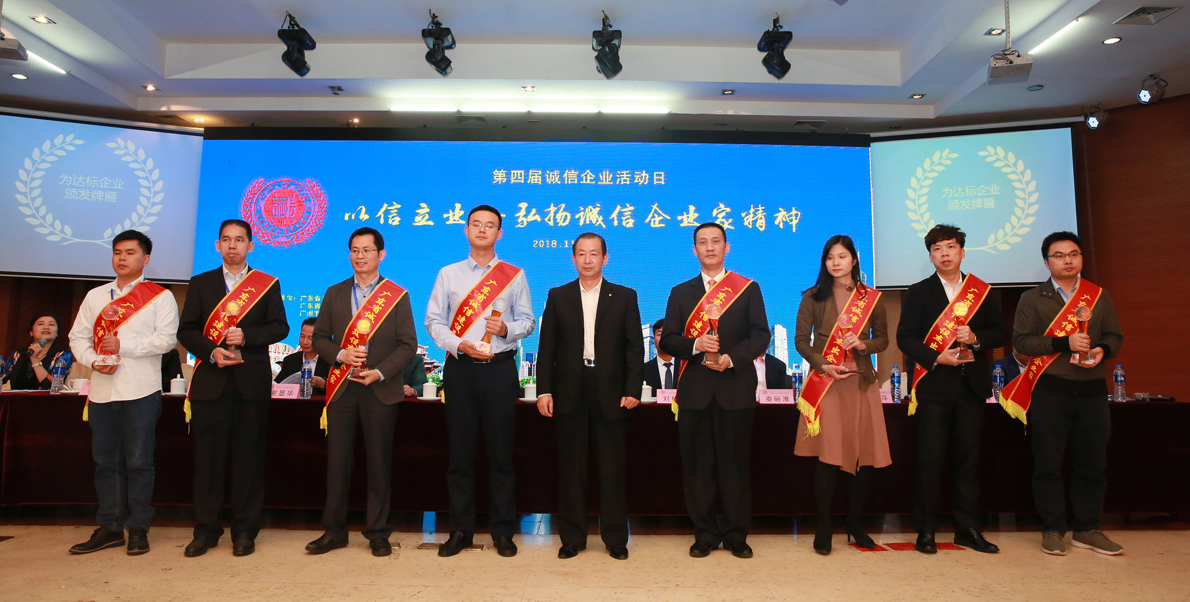 11月22日,2018年“以信立業(yè)—弘揚(yáng)誠(chéng)信企業(yè)家精神”第四屆廣東省誠(chéng)信企業(yè)活動(dòng)日在廣州舉行?;顒?dòng)由廣東省企業(yè)誠(chéng)信建設(shè)促進(jìn)會(huì)、廣東省企業(yè)競(jìng)爭(zhēng)力促進(jìn)會(huì)和廣州市誠(chéng)信建設(shè)促進(jìn)會(huì)聯(lián)合主辦。