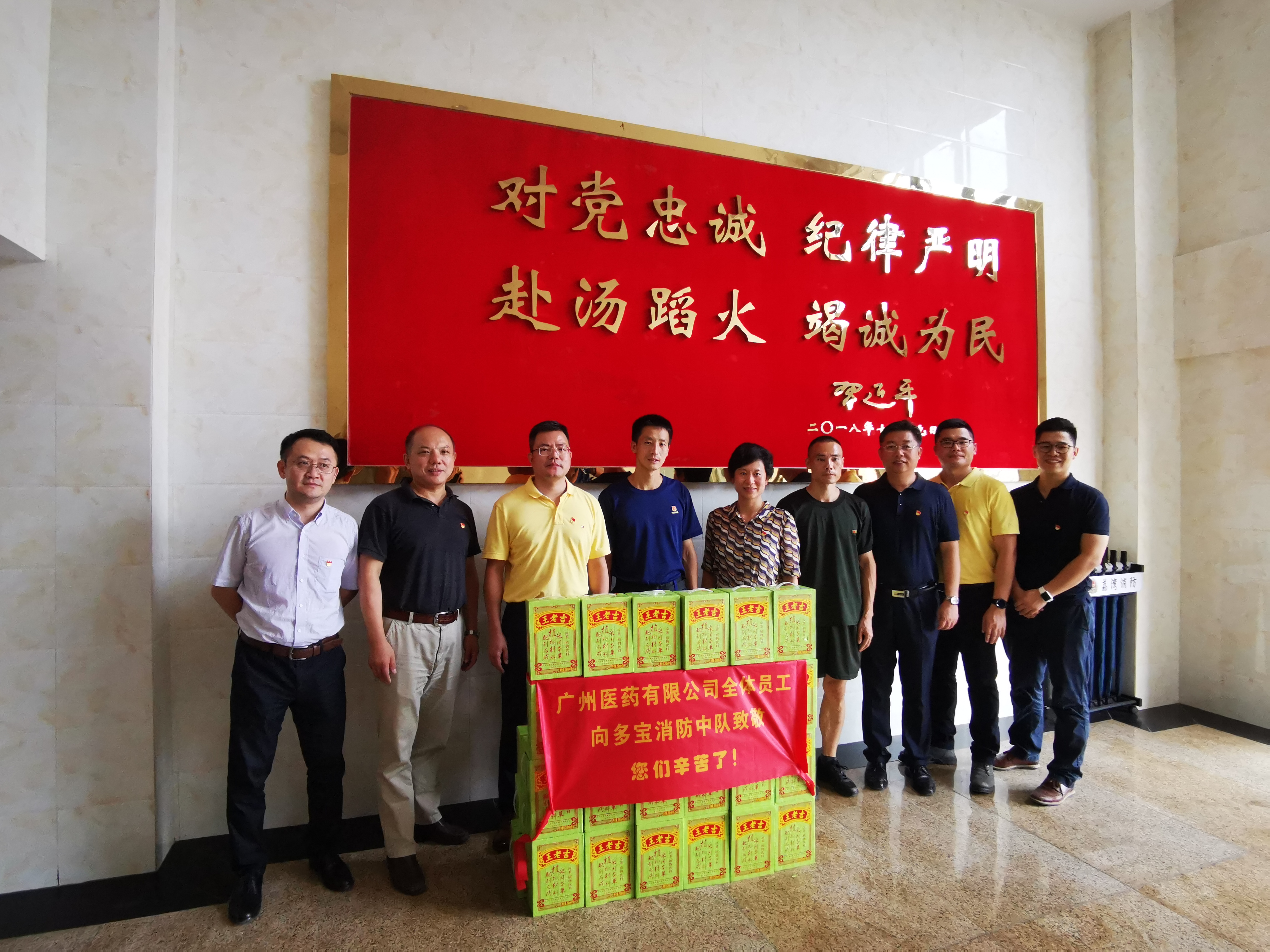 8月13日下午,廣州醫(yī)藥黨委委員、董事李曉東,紀委委員、本部行政黨總支書記、人力資源部總監(jiān)周敏華,器化公司黨支部書記、總經理吳翔,廣州醫(yī)藥安全保衛(wèi)部總監(jiān)王南鷹、財務管理部副部長鐘胤泰一行先后走訪了多寶派出所、多寶消防中隊、黃沙消防中隊以及廣州交警荔灣大隊等屬地行政主管部門,開展企業(yè)“送清涼”高溫慰問活動。