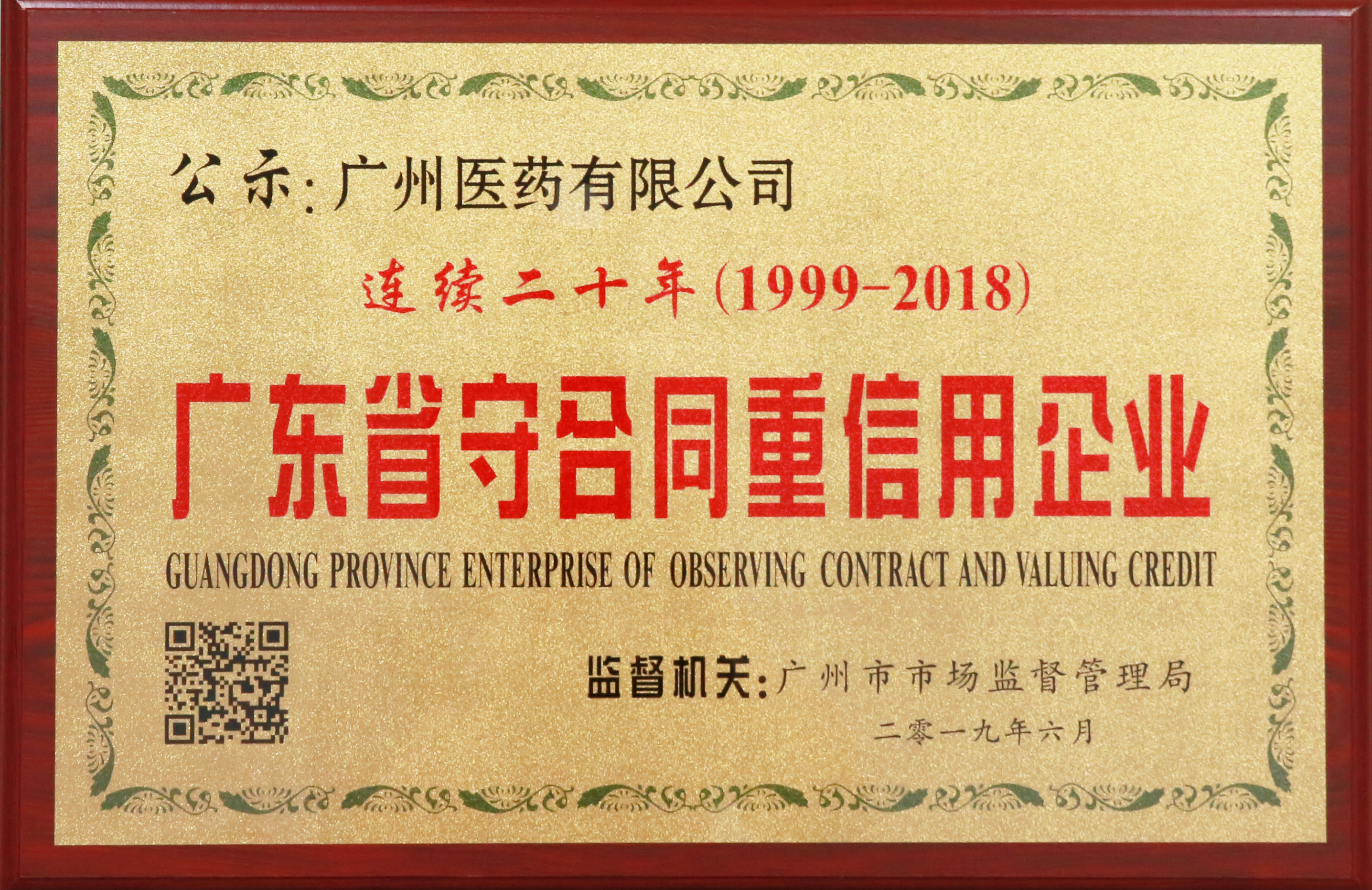 廣州醫(yī)藥連續(xù)20年獲“廣東省守合同重信用企業(yè)”稱號