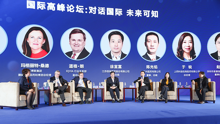 會上,陳光焰總裁作為中國醫(yī)藥商業(yè)協(xié)會副會長參加了大會安排的國際高峰對話論壇,與IQVIA行業(yè)關(guān)系部副總裁道格·朗、HDA總裁兼首席執(zhí)行官約翰·格雷、沃博聯(lián)國際零售業(yè)務(wù)常務(wù)董事Margrethe Sunde、江蘇恒瑞醫(yī)藥股份有限公司副總裁徐宜富、上藥科園信海醫(yī)藥有限公司總經(jīng)理于銳、深圳市麥德信藥房管理有限公司董事長兼總經(jīng)理趙彥娟圍繞“對話國際,未來可知”的議題展開頭腦風(fēng)暴。