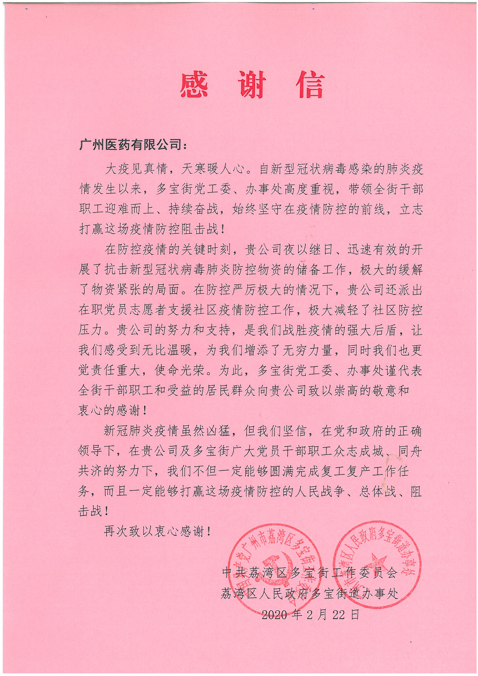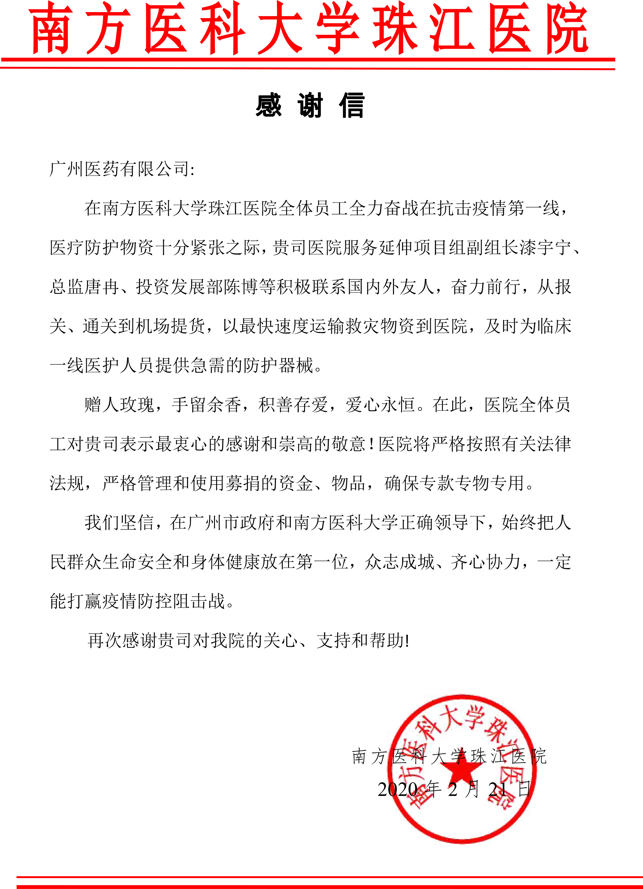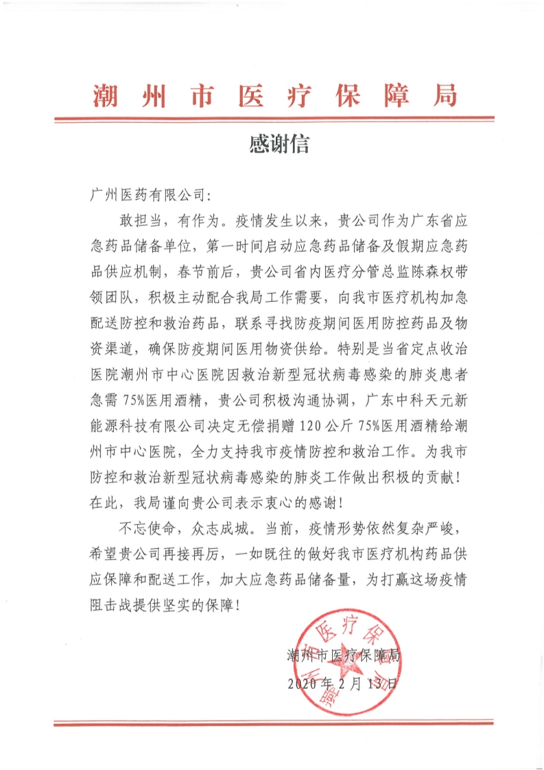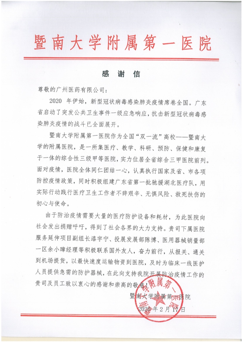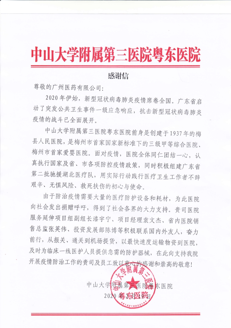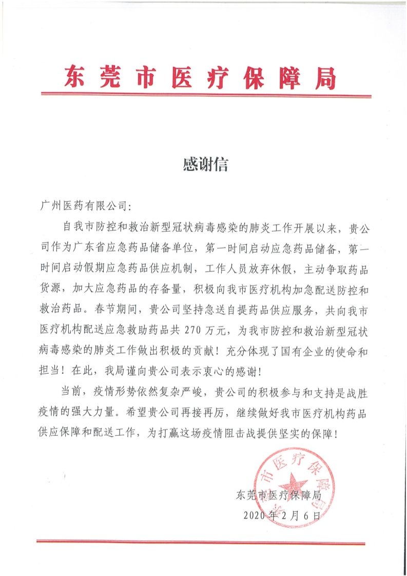 不少醫(yī)院、街道、單位發(fā)來感謝信,這是對廣州醫(yī)藥的肯定和認可。疫情尚未結(jié)束,廣州醫(yī)藥將繼續(xù)堅守在一線,全力以赴確保市民大眾安全用藥和保證藥品供應。