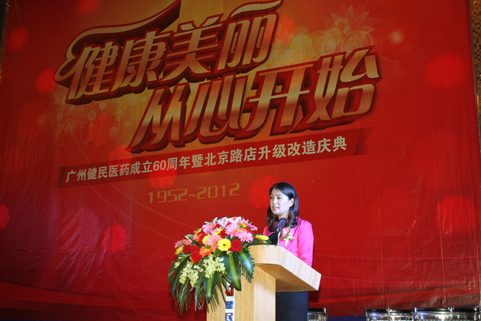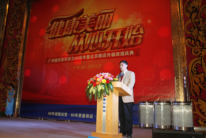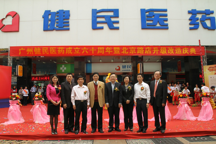 2012年3月29日,廣州健民醫(yī)藥的歷史又添光輝一頁——廣州健民醫(yī)藥迎來60周年華誕暨北京路店升級(jí)改造慶典,廣東省食品藥品監(jiān)督管理局副局長陳德偉,廣州市食品藥品監(jiān)督管理局副局長符志彬,廣州市醫(yī)療保險(xiǎn)服務(wù)管理局局長張秋紅,廣州醫(yī)藥集團(tuán)有限公司董事長、黨委書記楊榮明,廣州醫(yī)藥集團(tuán)有限公司副總經(jīng)理、廣州醫(yī)藥有限公司黨委書記施少斌,廣州醫(yī)藥有限公司總裁于景輝以及廣州醫(yī)藥有限公司的高管成員、部室領(lǐng)導(dǎo)出席了盛會(huì)。健民醫(yī)藥的老領(lǐng)導(dǎo)老前輩、以及長期給予健民支持與合作的客戶和供應(yīng)商代表、健民醫(yī)藥的員工代表悉數(shù)到場,共賀盛事。與會(huì)領(lǐng)導(dǎo)嘉賓熱烈恭賀健民華誕;積極鼓勵(lì)健民傳承歷史;殷切期望健民再創(chuàng)輝煌。