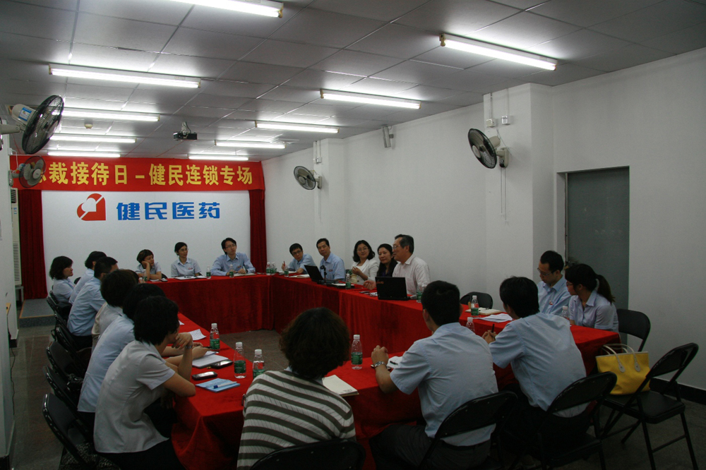 今年是健民連鎖成立60周年,為深入了解員工對健民連鎖的經(jīng)營管理現(xiàn)狀及未來發(fā)展的意見和建議,總裁接待日活動特辟健民連鎖專場,于4月27日下午在健民連鎖總部舉行?;顒佑煽偛棉k公室主任王紅嫣主持,公司董事、總裁于景輝,黨委副書記、工會主席、紀(jì)委書記楊瑞云參加了活動。