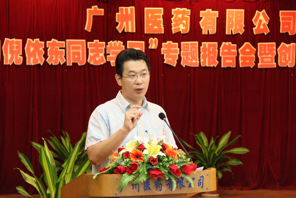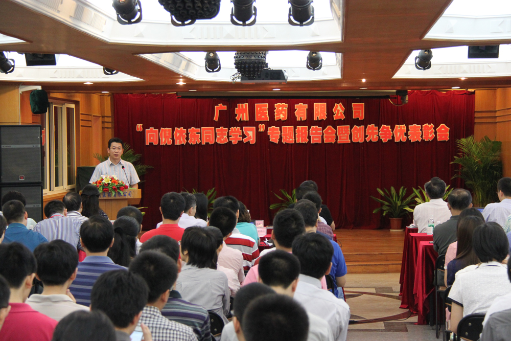 2012年7月12日上午,廣州醫(yī)藥有限公司召開“向倪依東同志學(xué)習(xí)”專題報告會暨創(chuàng)先爭優(yōu)表彰會。廣州市優(yōu)秀黨員、廣藥集團白云山中一藥業(yè)董事長、集團王老吉商標(biāo)案主持人倪依東同志親臨會場就“王老吉”商標(biāo)仲裁案作了深刻感人而又催人奮進(jìn)的專題報告,廣藥集團辦公室副主任黃巧華現(xiàn)場宣讀《關(guān)于在全集團開展向倪依東同志學(xué)習(xí)的決定》并作動員講話。會議由公司黨委副書記楊瑞云主持,公司黨政工團領(lǐng)導(dǎo)班子及主管以上人員將近200人參會。會上還表彰了廣州醫(yī)藥有限公司2010—2012年創(chuàng)先爭優(yōu)活動中的3個先進(jìn)基層黨支部和71名優(yōu)秀共產(chǎn)黨員。