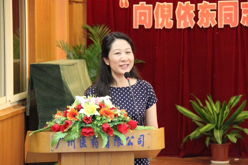 廣藥集團辦公室副主任黃巧華宣讀《關(guān)于在全集團開展向倪依東同志學(xué)習(xí)的決定》并作動員講話