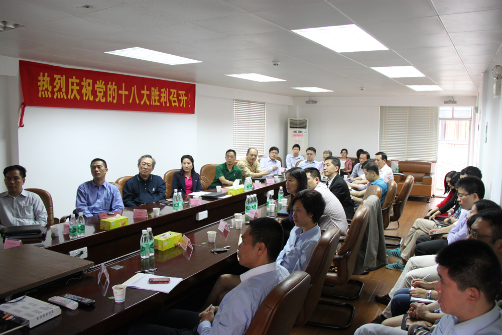 2012年11月8日,中國(guó)共產(chǎn)黨第十八次全國(guó)代表大會(huì)在北京隆重召開(kāi),廣州醫(yī)藥黨委組織公司黨委委員、各黨支部書(shū)記、公司團(tuán)委委員觀看了大會(huì)視頻現(xiàn)場(chǎng)直播,黨委委員、公司總裁于景輝,黨委副書(shū)記、紀(jì)委書(shū)記、工會(huì)主席楊瑞云,黨委委員、副總裁劉允堅(jiān),黨委委員、副總裁陳光焰帶頭認(rèn)真學(xué)習(xí)了胡錦濤總書(shū)記《十八大報(bào)告》精神,熱烈慶祝黨的十八大勝利召開(kāi)!